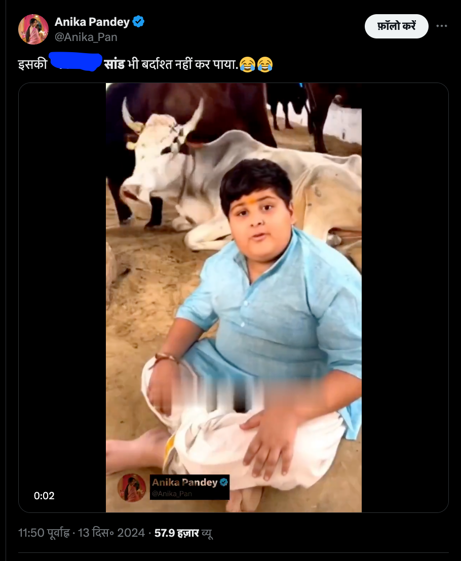 एक्स पर एक यूजर ने वीडियो शेयर करते हुए लिखा, 'इसकी **** सांड भी बर्दाश्त नहीं कर पाया'.