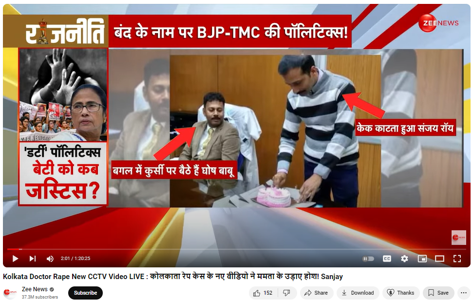 जी न्यूज ने भी अपने एक बुलेटिन में इस तस्वीर में दिख रहे शख्स को आरोपी संजय रॉय बताया.