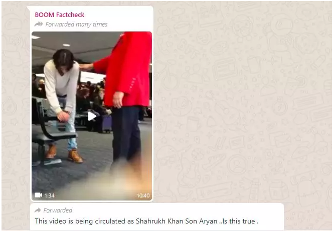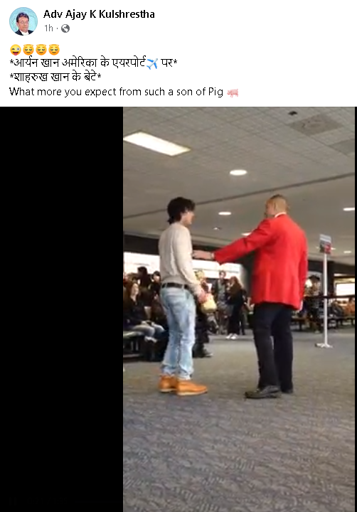 फ़ेसबुक पर इसे एक यूज़र ने शेयर करते हुए कैप्शन में लिखा, "आर्यन खान अमेरिका के एयरपोर्ट पर *शाहरुख खान के बेटे".