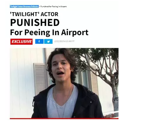 बूम ने वायरल वीडियो के स्क्रीनशॉट पर रिवर्स इमेज सर्च किया और पाया कि 2013 के एक न्यूज़ आर्टिकल में इस घटना पर रिपोर्ट की गयी है. 22 फरवरी, 2013 को TMZ में पब्लिश एक रिपोर्ट में वायरल वीडियो में दिख रहे व्यक्ति की पहचान 'Twilight' फ़िल्म के अभिनेता Bronson Pelletier के रूप में की गई है. आर्टिकल की हेडलाइन में लिखा है 'ट्वाइलाइट' के अभिनेता को एयरपोर्ट पर पेशाब करने की सजा.'