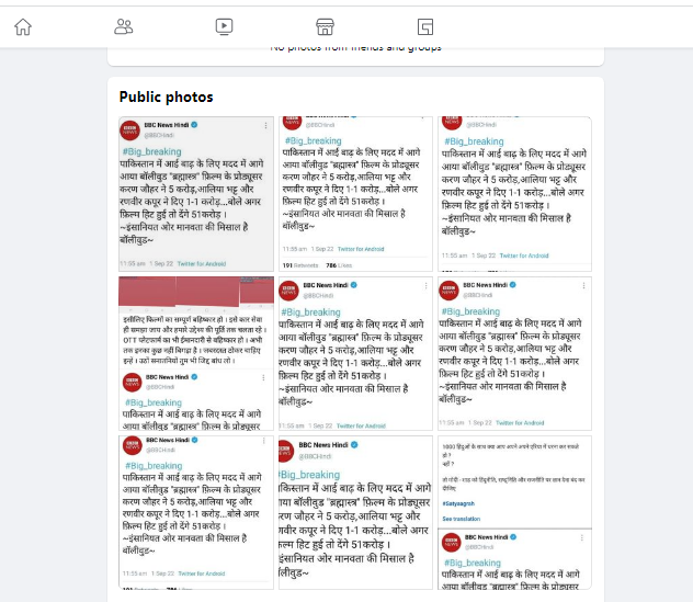 सोशल मीडिया पर बीबीसी हिंदी के नाम पर एक स्क्रीनशॉट बहुत वायरल है जिसके माध्यम से दावा किया जा है कि पाकिस्तान में आयी भयंकर बाढ़ में मदद के लिए बॉलीवुड ने हाथ बढ़ाया है. बॉलीवुड की आने वाली 'ब्रह्मास्त्र' फ़िल्म के निर्माता करण जौहर ने 5 करोड़, अभिनेता रनबीर कपूर और अभिनेत्री आलिया भट्ट ने मदद के लिए एक-एक करोड़ रुपये दिए हैं.