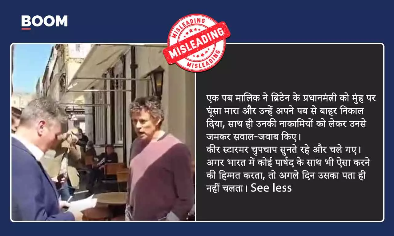 सोशल मीडिया पर ब्रिटेन के प्रधानमंत्री कीर स्टार्मर का एक पुराना वीडियो भ्रामक दावे से वायरल हो रहा है. वीडियो में एक शख्स उन्हें खरी-खोटी सुनाते हुए अपने पब में जाने से रोकता नजर आ रहा है.