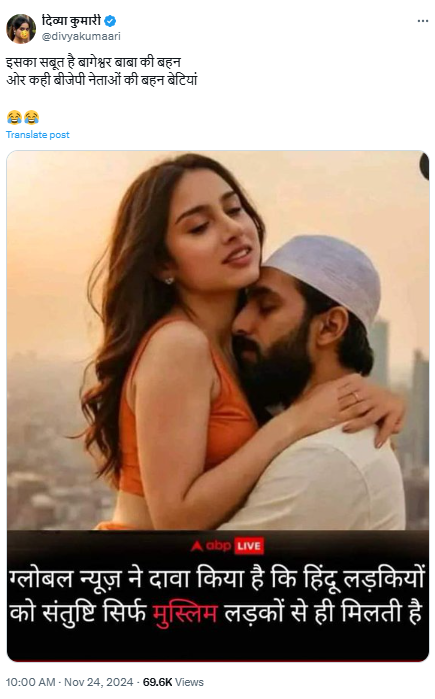 एक्स पर एक वेरिफाइड यूजर दिव्या कुमारी ने ग्राफिक को पोस्ट करते हुए लिखा, 'इसका सबूत है बागेश्वर बाबा की बहन और कई बीजेपी नेताओं की बहन-बेटियां.'