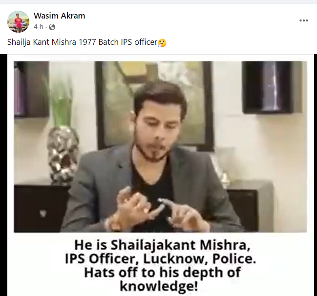 वायरल वीडियो में गहरे रंग का कोट पहने हुए एक शख्स संसद सदस्यों और विधानसभा सदस्यों के ऊपर दर्ज आपराधिक मुकदमों के बारे में बातें करता दिख रहा है. इस दौरान वह कुछ आंकड़े भी बता रहा है. वीडियो में सबसे नीचे अंग्रेजी में लिखा एक टेक्स्ट भी मौजूद है, जिसका हिंदी अनुवाद है " ये लखनऊ पुलिस के आईपीएस अधिकारी शैलजाकांत मिश्रा हैं. उनके गहरे ज्ञान को सलाम".