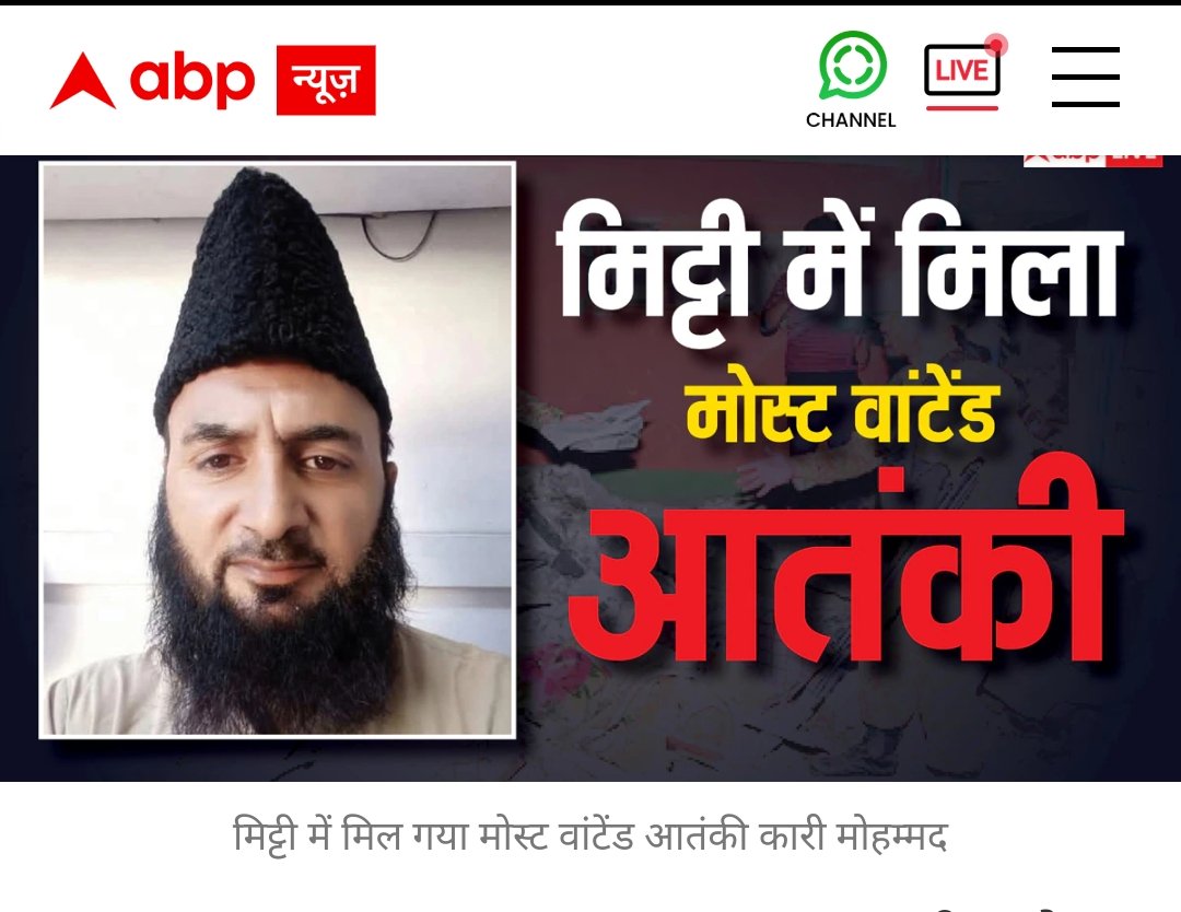 न्यूज वेबसाइट एबीपी लाइव हिंदी ने 7 मई 2025 को एक आर्टिकल में मोहम्मद इकबाल की तस्वीर इस्तेमाल करते हुए उन्हें मोस्ट वॉन्टेड आतंकी बताया और लिखा कि भारत की ओर से एयरस्ट्राइक में वह मारे गए.