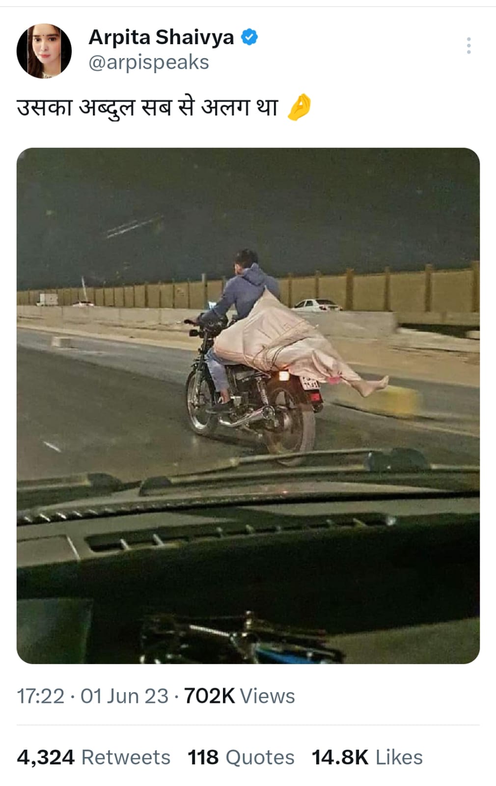 कई दक्षिणपंथी यूज़र्स ने तस्वीर को मुस्लिम समुदाय पर निशाना साधते हुए कैप्शन के साथ पोस्ट कर रहे हैं, “उसका अब्दुल सबसे अलग था.”