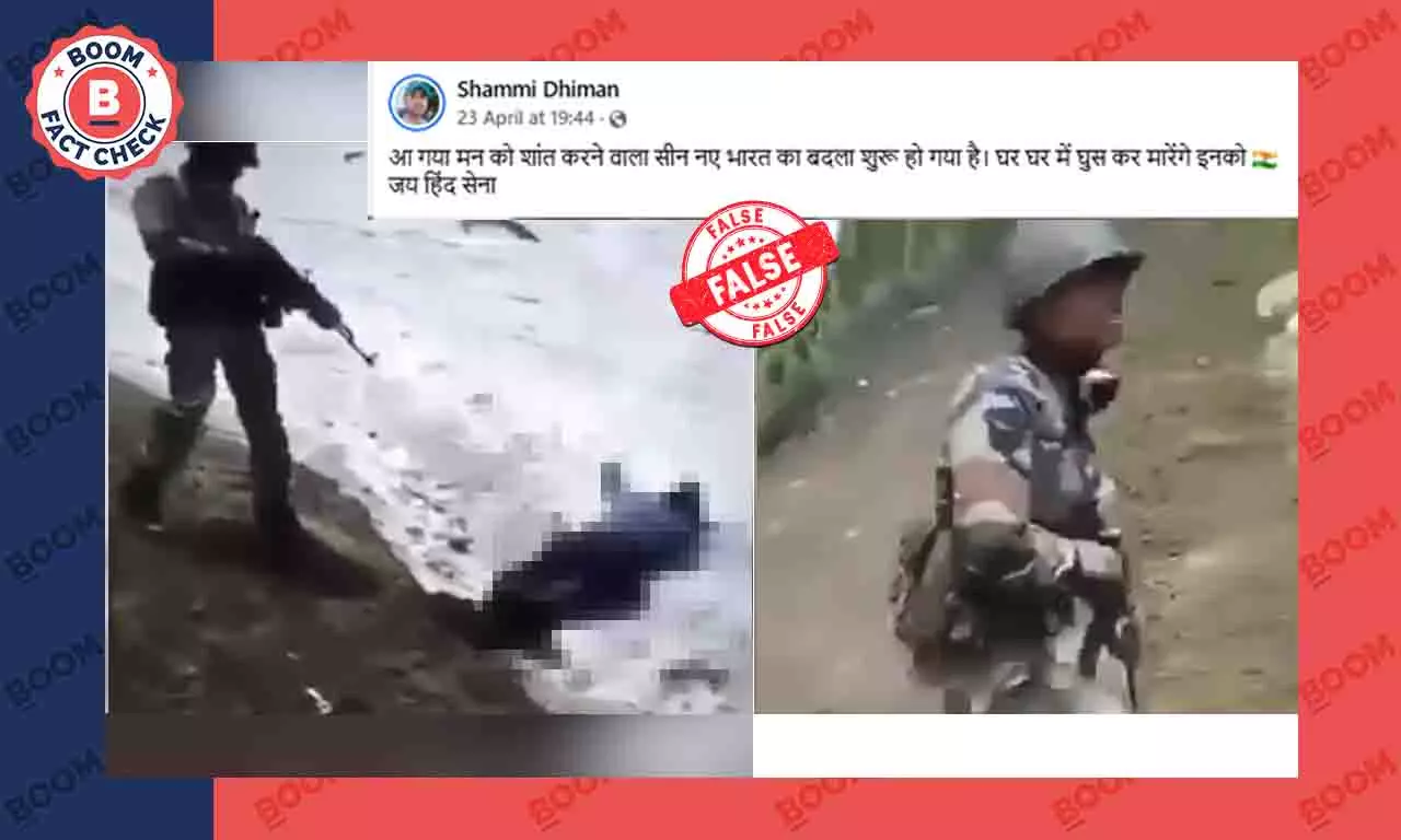 सोशल मीडिया पर पहलगाम हमले के बाद भारतीय सेना द्वारा जवाबी कार्रवाई किए जाने के दावे से एक वीडियो वायरल है. इस वीडियो में कथित तौर पर एक सैनिक दो शवों पर पॉइंट ब्लैंक रेंज से गोली मारता नजर आ रहा है.