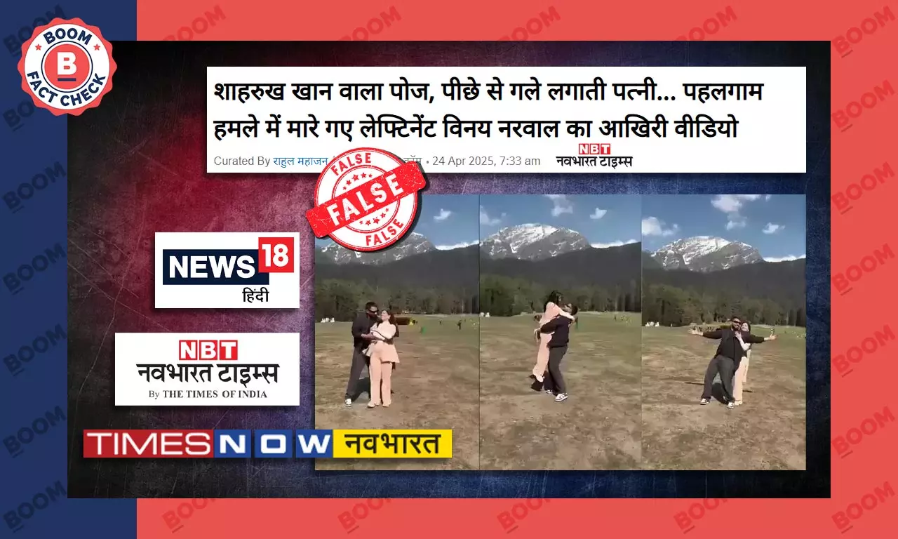 जम्मू-कश्मीर के पहलगाम आतंकी हमले में शहीद हुए भारतीय नौसेना के लेफ्टिनेंट विनय नरवाल और उनकी पत्नी के दावे से एक वीडियो सोशल मीडिया पर वायरल है. सोशल मीडिया यूजर के साथ तमाम हिंदी मीडिया न्यूज आउटलेट ने भी इसे विनय का आखिरी वीडियो बताया.