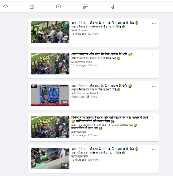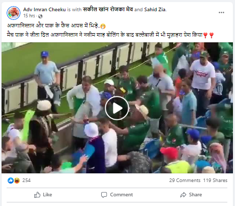 फ़ेसबुक पर एक यूज़र ने वीडियो शेयर करते हुए लिखा,'अफगानिस्तान और पाक के फैंस आपस में भिड़े..🤭 मैच पाक ने जीता दिल अफगानिस्तान ने नसीम शाह बोलिंग के बाद बल्लेबाजी में भी मुज़ाहरा पेश किया'