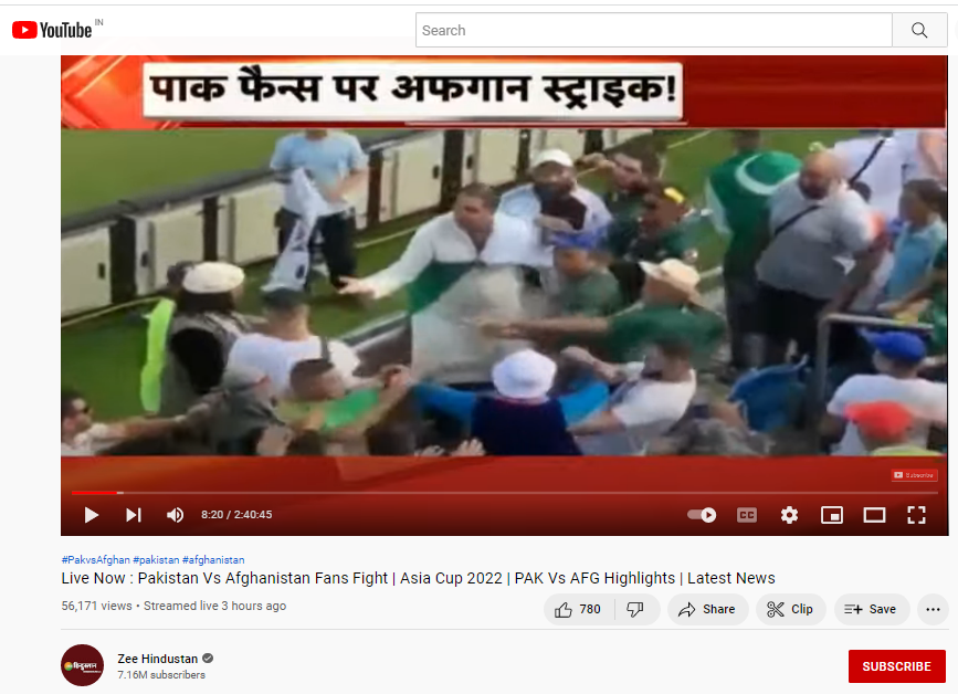 वीडियो के बारे में डिस्क्रिप्शन में लिखा था कि आईसीसी क्रिकेट विश्व कप 2019 के मैच से पहले पाकिस्तान और अफ़ग़ानिस्तान के प्रशंसकों के बीच लड़ाई हुई.