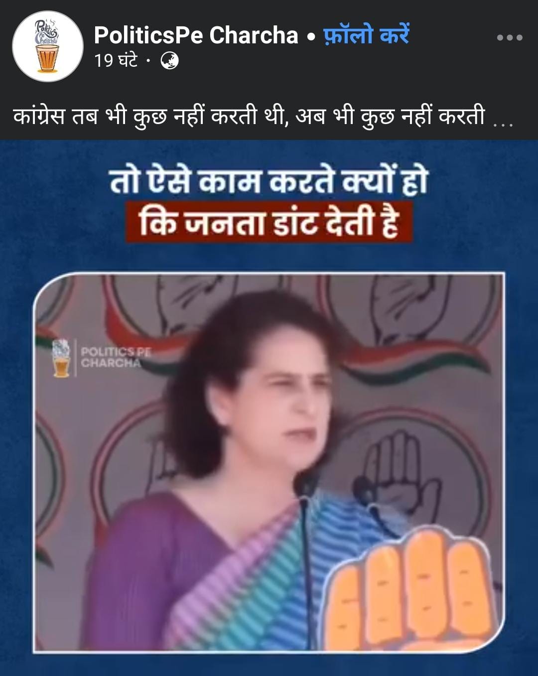 स्पष्ट है कि प्रियंका गांधी की एक लाइन को मूल संदर्भ से हटाकर भ्रामक दावों के साथ शेयर किया गया. असल में प्रियंका गांधी जनता के प्रति नेताओं की जवाबदेही की बात करते हुए राजीव गांधी और इंदिरा गांधी का उदहारण दे रही थीं. बाद में वह जनता की जागरूकता के संदर्भ में बोलते हुए कहती हैं कि पहले जनता काम नहीं करने पर नेता से सवाल पूछती थी, अभी उसमें कमी आई है और यह तभी खत्म होगा जब जागरूकता आएगी.