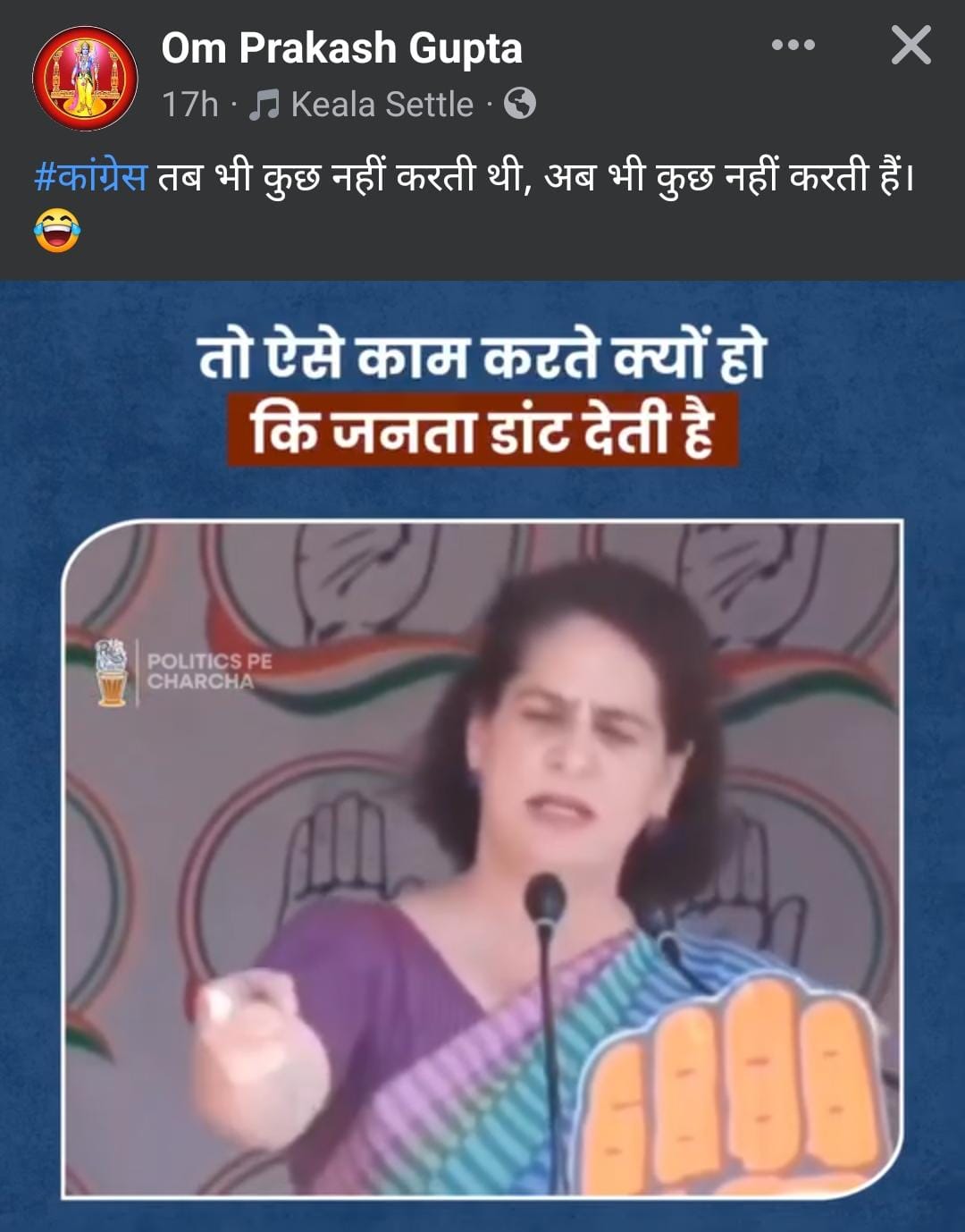 सोशल मीडिया पर कांग्रेस की राष्ट्रीय महासचिव प्रियंका गांधी के भाषण का एक वीडियो वायरल है, जिसमें वह बता रही हैं अमेठी की जनता राजीव गांधी को काम न होने पर डांट देती थी. प्रियंका के इस क्रॉप्ड वीडियो को इस कैप्शन के साथ शेयर किया जा रहा है कि कांग्रेस तब भी कुछ नहीं करती थी, अब भी कुछ नहीं करती है.