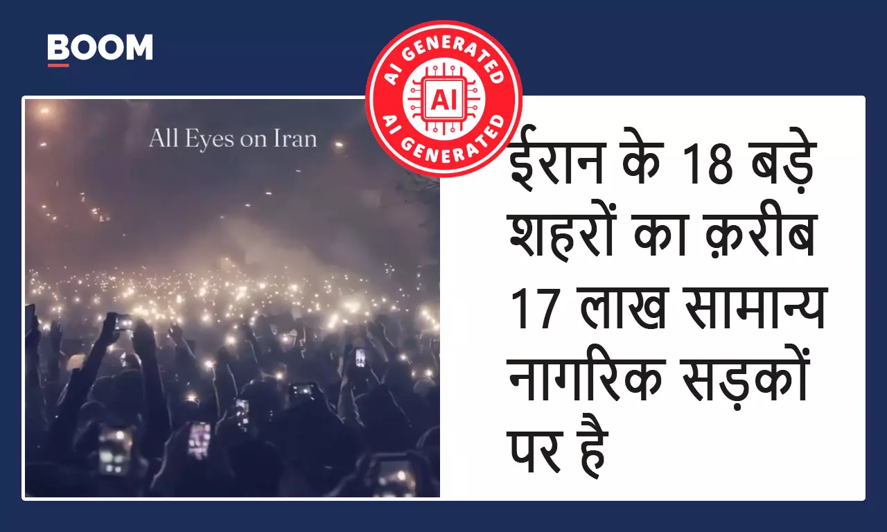 एक्स और फेसबुक पर इसे साझा करते हुए भारतीय यूजर्स ने इसके हिंदी कैप्शन में लिखा, "ईरान के 18 बड़े शहरों का करीब 17 लाख सामान्य नागरिक सड़कों पर है..!!" (आर्काइव लिंक)