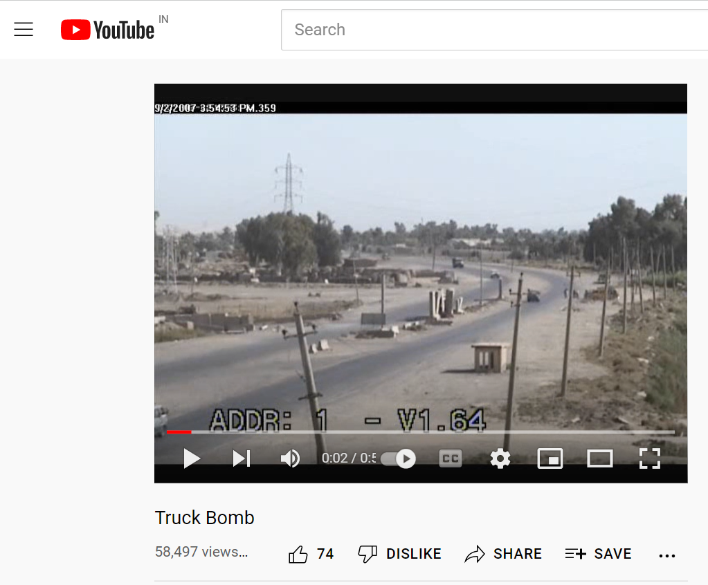 जब बूम ने विडियो के स्क्रीनशॉट के साथ इंटरनेट पर सर्च किया तो कई यूट्यूब वीडियो के लिंक सामने आए. लिंक पर क्लिक करने पर हमनें देखा कि वीडियो को 6 मार्च 2008 को अपलोड किया गया है. वीडियो यूट्यूब पर 'truck bomb' शीर्षक के साथ है. वीडियो के डिस्क्रिप्शन में बताया गया है कि वीडियो इराक का है.