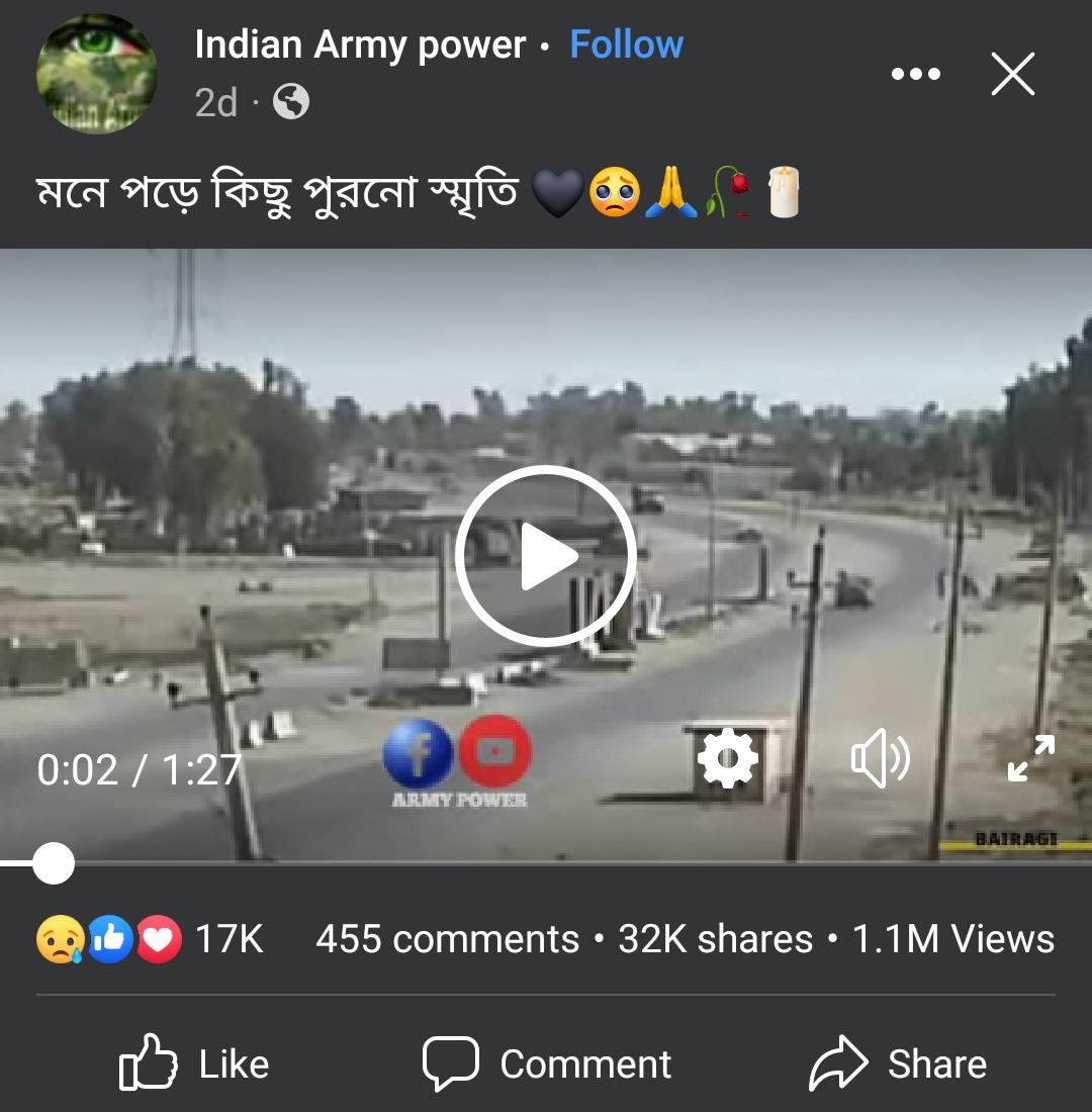 एक अन्य फ़ेसबुक पेज़ Indian Army power ने भी यह वीडियो बांग्ला कैप्शन के साथ शेयर किया है. कैप्शन का अनुवाद है 'पुराना समय याद आता है'.