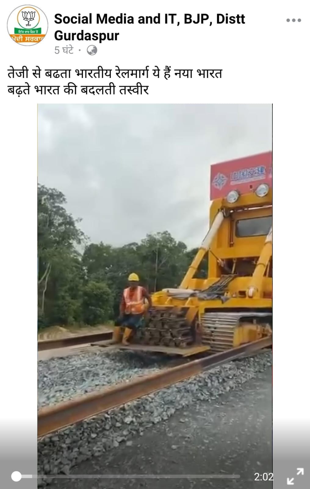 सोशल मीडिया पर रेलवे ट्रैक के निर्माण का एक वीडियो इस फ़र्जी दावे से वायरल है कि यह भारत का है.