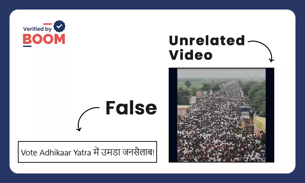 बूम ने जांच में पाया कि यह वीडियो जुलाई 2025 का महाराष्ट्र के बुलढाणा जिले के शेगांव में हुई एक धार्मिक यात्रा का है, जबकि बिहार में राहुल गांधी के नेतृत्व में हो रही वोटर अधिकार यात्रा 17 अगस्त 2025 से शुरु हुई थी.