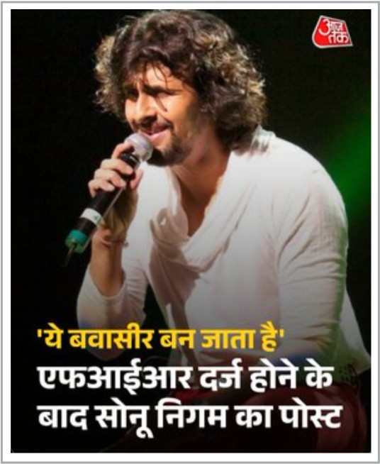 उनके इस बयान को भड़काऊ बताते हुए उनके खिलाफ कानूनी कार्रवाई की मांग उठी. बेंगलुरु के अवलहल्ली पुलिस स्टेशन में उनके खिआफ एफआईआर भी दर्ज की गई है. पूरे मामले पर सोनू निगम ने अब अपने इंस्टाग्राम पर पोस्ट शेयर किया और सफाई दी है. उन्होंने लिखा, "..एक देशभक्त होने के नाते, मैं उन लोगों से घृणा करता हूं जो भाषा, जाति या धर्म के नाम पर नफरत फैलाने की कोशिश करते हैं, खासकर पहलगाम में जो कुछ हुआ उसके बाद. मुझे उन्हें समझाना था, और मैंने किया..."