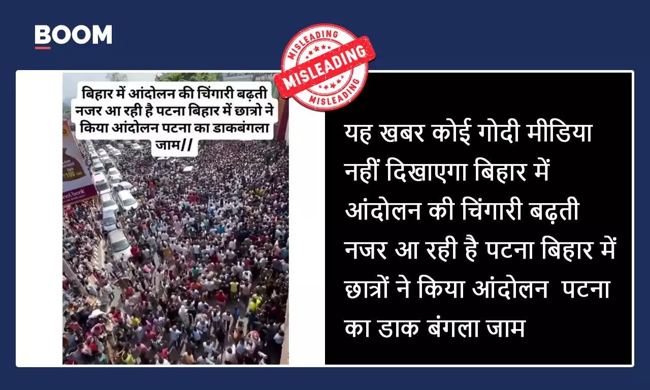 एक्स और फेसबुक पर यूजर्स इस वीडियो को बिहार की राजधानी पटना का बता रहे हैं और 'UGC लागू करो' के नारे के साथ लिख रहे हैं कि "यह खबर कोई गोदी मीडिया नहीं दिखाएगा. बिहार में आंदोलन की चिंगारी बढ़ती नजर आ रही है. पटना बिहार में छात्रों ने किया आंदोलन. पटना का डाक बंगला जाम." (आर्काइव लिंक)