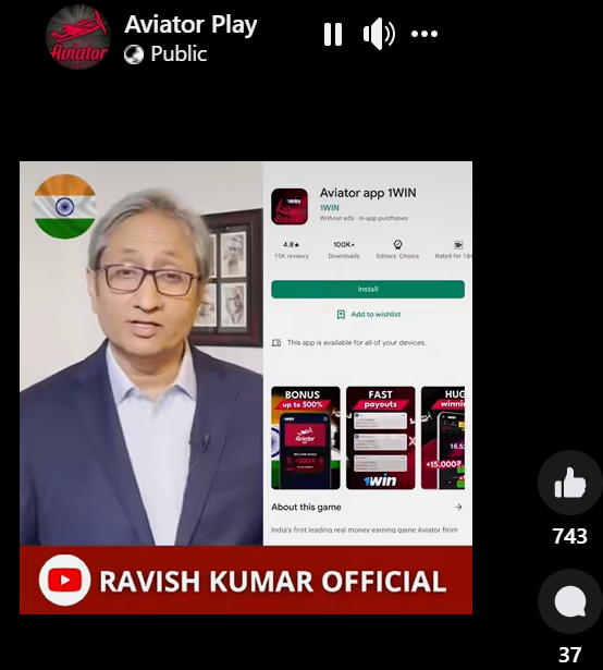 फिर हमने रवीश कुमार के फेसबुक और इंस्टाग्राम हैंडल्स खंगाले, पर वहां भी हमें ऐसा कोई वीडियो नहीं मिला, जिसमें रवीश ने इस एविएटर ऐप को प्रमोट किया हो.पड़ताल के दौरान हमें रवीश के फेसबुक पेज पर अगस्त 2023 को शेयर किया हुआ एक पोस्ट मिला, जिसमें उन्होंने अपने नाम पर हो रही जालसाजी का खंडन करते हुए लिखा, "ये एक और फ्रॉड है जो मेरी तस्वीर का इस्तेमाल कर रहा है. बड़ी संख्या में दर्शकों और पाठकों ने इस तरह के लिंक और स्क्रीनशॉट भेजे हैं कि गेमिंग एप मेरा चेहरा लगाकर पैसा वसूल रहा है. आप सावधान रहे. मेरे नाम से कोई भी अपील करे, पैसा न दें.