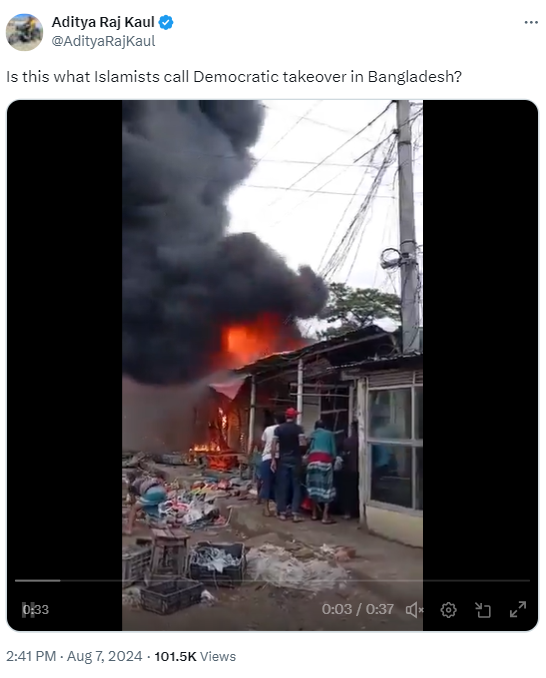 इसके अलावा मनीष कश्यप और टीवी9 के एग्जीक्यूटिव एडिटर आदित्य राज कौल ने भी इस वीडियो को बांग्लादेश के मौजूदा हालात से जोड़कर सांप्रदायिक दावे के साथ शेयर किया है.