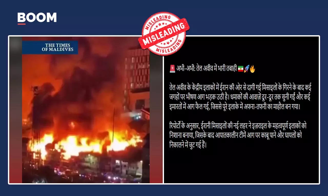 ईरान-इजरायल के जारी संघर्ष के बीच सोशल मीडिया पर एक वीडियो तेजी से वायरल हो रहा है, जिसमें एक रिहायशी इलाके से भीषण आग और धुएं का गुबार उठता दिखाई दे रहा है. इस वीडियो को ईरान द्वारा इजरायल के शहर तेल अवीव पर किए गए हमले के बाद की स्थिति का बताकर शेयर किया जा रहा है.
