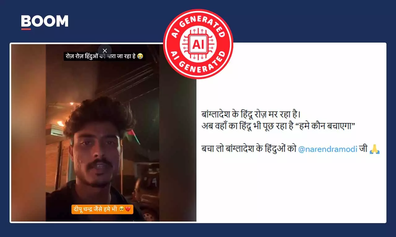 बांग्लादेश में हिंसा और आगजनी की घटनाओं पर व्लॉगिंग करते एक युवक का वीडियो सोशल मीडिया पर वायरल है. इस वीडियो में वह युवक लोगों से अपनी जान बचाने की अपील करते हुए कहता है, ‘यह बांग्लादेश है, अभी रात का समय है दीपू चादर जैसे हमें भी खत्म कर देगें, आप खुद देख सकते हो क्या हो रहा है.’