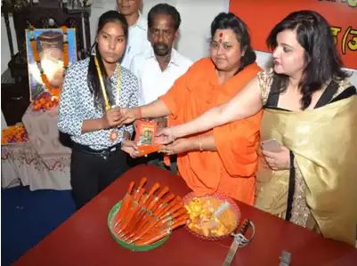 बूम ने दोनों तस्वीरों को रिवर्स इमेज पर डाला और पाया की पहली तस्वीर मई 2019 में आगरा में ली गयी थी| तब जब हिन्दू महासभा की राष्ट्रीय अध्यक्ष पूजा शकुन पांडेय ने दसवीं और बाहरवीं के बच्चों को चाकू बांटे थे| इसके बाद इस कदम की काफी आलोचना भी हुई थी| आपको बता दें की पांडेय पहले भी विवाद में फसीं थीं जब उन्होंने महात्मा गाँधी के पुतले पर गोली चला कर उनकी मौत को दोहराया था|