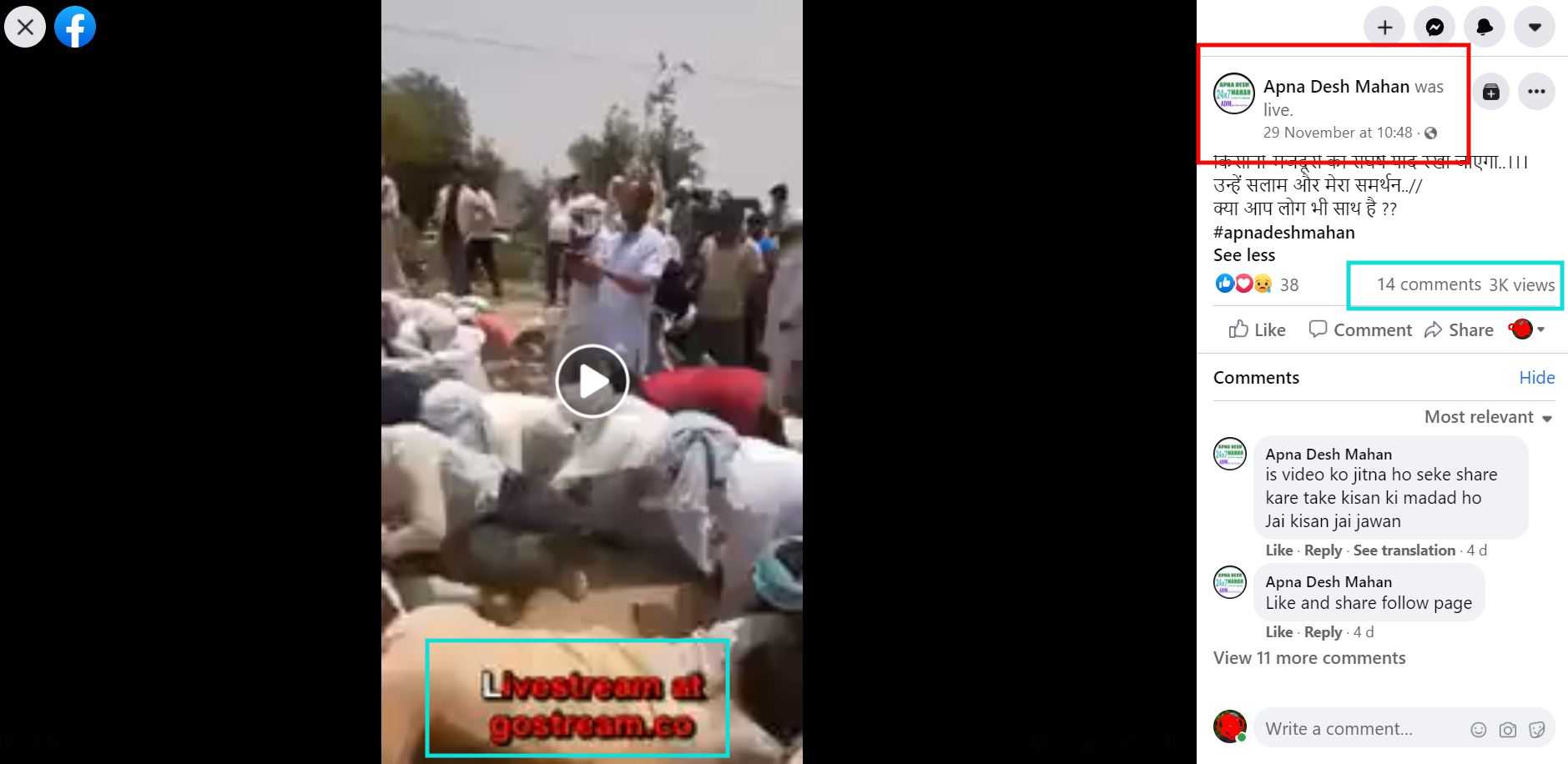 हमनें देखा कि जिस वीडियो को 29 नवंबर 2020 को पोस्ट कर 'फ़ेसबुक लाइव' बताया गया है, वे 28 नवंबर 2020 को कई यूज़र्स द्वारा पोस्ट किया गया था |