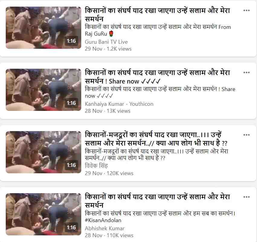 यह वीडियो फ़ेसबुक पर जोरों से वायरल है | कैप्शन में लिखा है: "किसानों-मजदूरों का संघर्ष याद रखा जाएगा..।।। उन्हें सलाम और मेरा समर्थन..// क्या आप लोग भी साथ है ??"