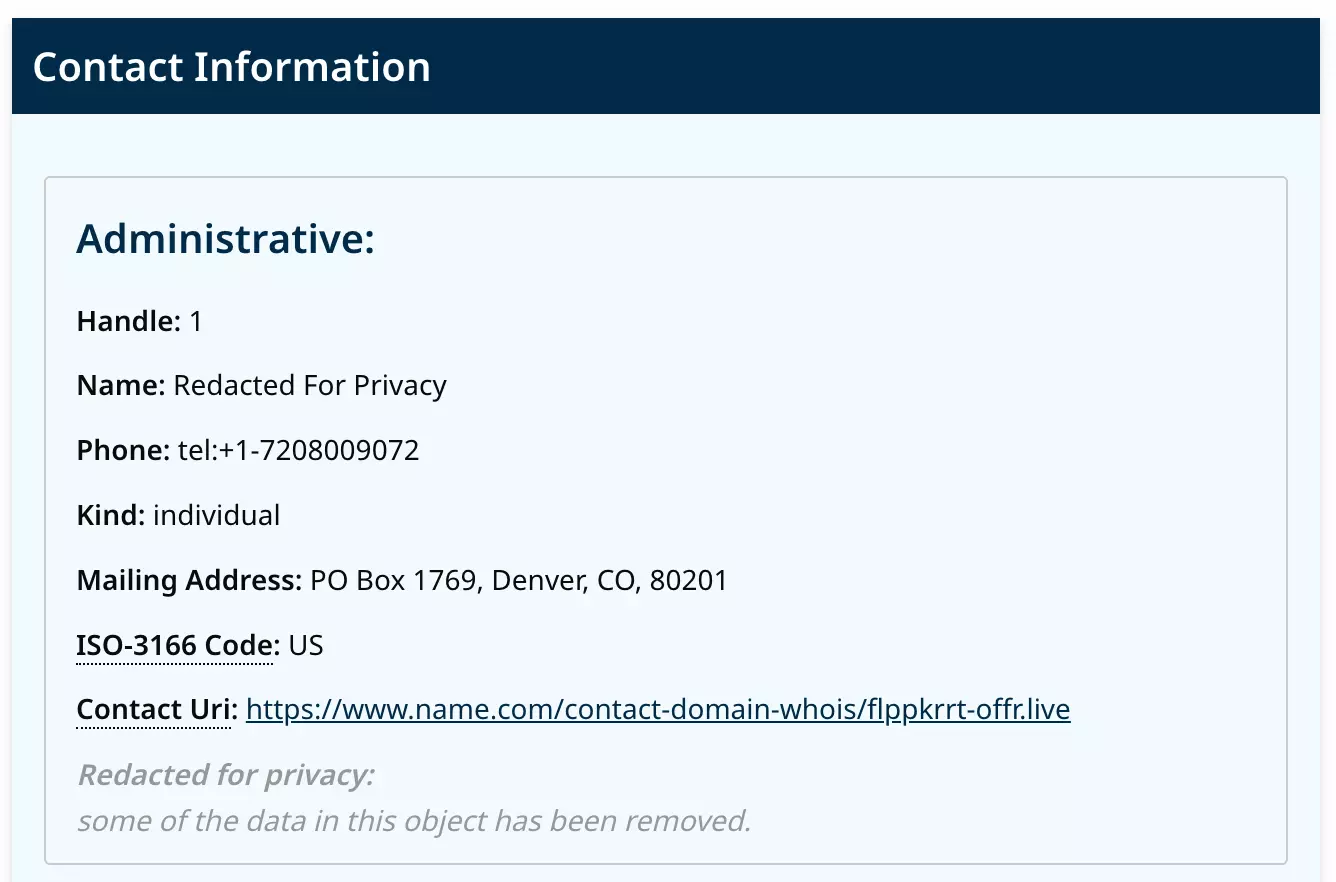 हमने डोमेन नाम का प्रबंधन करने वाली संस्था (ICANN) की वेबसाइट पर इसे चेक किया, जिसके अनुसार इस डोमेन को किसी व्यक्ति द्वारा 6 अप्रैल 2025 को रजिस्टर किया गया था. हमने पाया कि उस व्यक्ति द्वारा डोमेन नेम की आईडेंटिटी को 'Domain Protection Services' द्वारा छिपा दिया गया है.