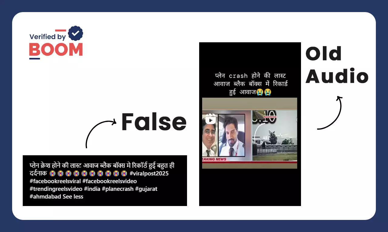बूम ने जांच में पाया कि वायरल ऑडियो 2009 से ही इंटरनेट पर मौजूद है. इसका अहमदाबाद में क्रैश हुई एयर इंडिया की फ्लाइट AI 171 से कोई संबंध नहीं है.