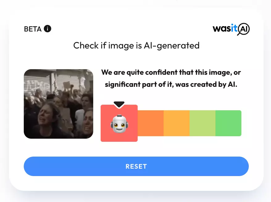 बूम ने पाया कि इजरायल के लोगों के माफी मांगने के वीडियो आर्टिफिशियल इंटेलिजेंस से तैयार किए गए हैं. एआई डिटेक्टर टूल ने भी इसकी पुष्टि की.