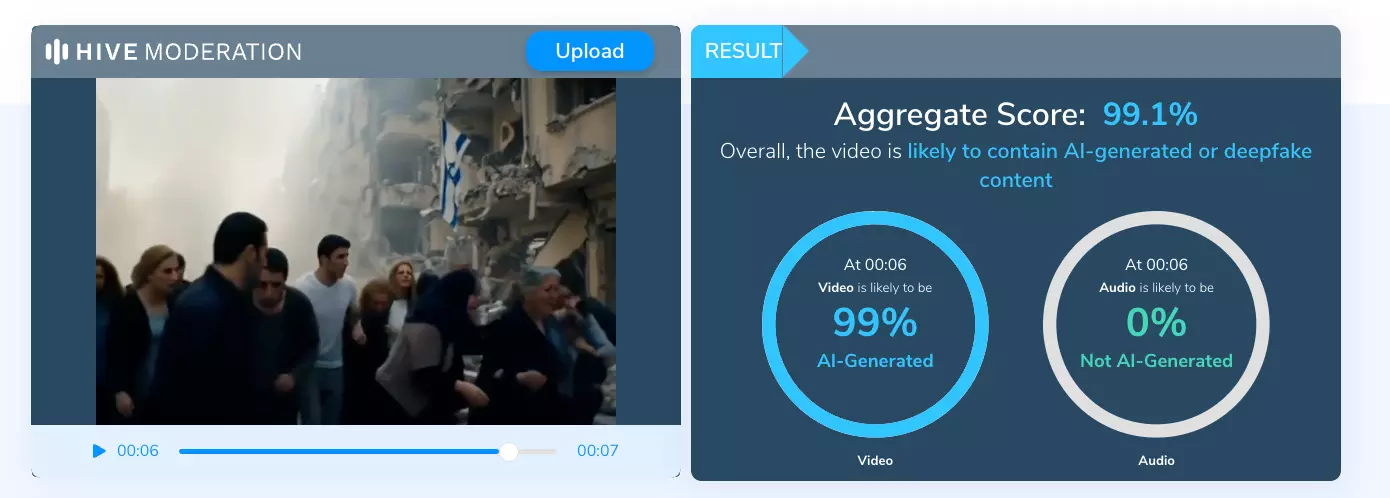 बूम ने जांच में पाया कि यह दोनों वीडियो एआई जनरेटेड हैं. एआई डिटेक्टर टूल HIVE Moderation और WasItAI इनके एआई से बने होने की पुष्टि करते हैं.