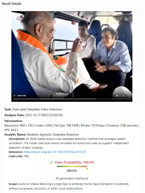 एआई डिटेक्टर टूल DeepFake-O-Meter ने इस वीडियो के एआई से बने होने की पुष्टि की है.