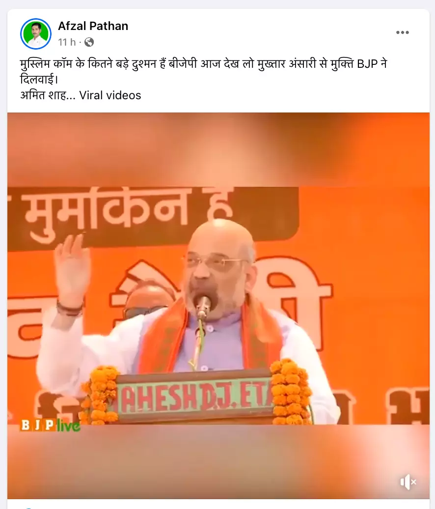 मुख्तार अंसारी से मुक्ति दिलाने का अमित शाह का पुराना भाषण हाल का बताकर वायरल