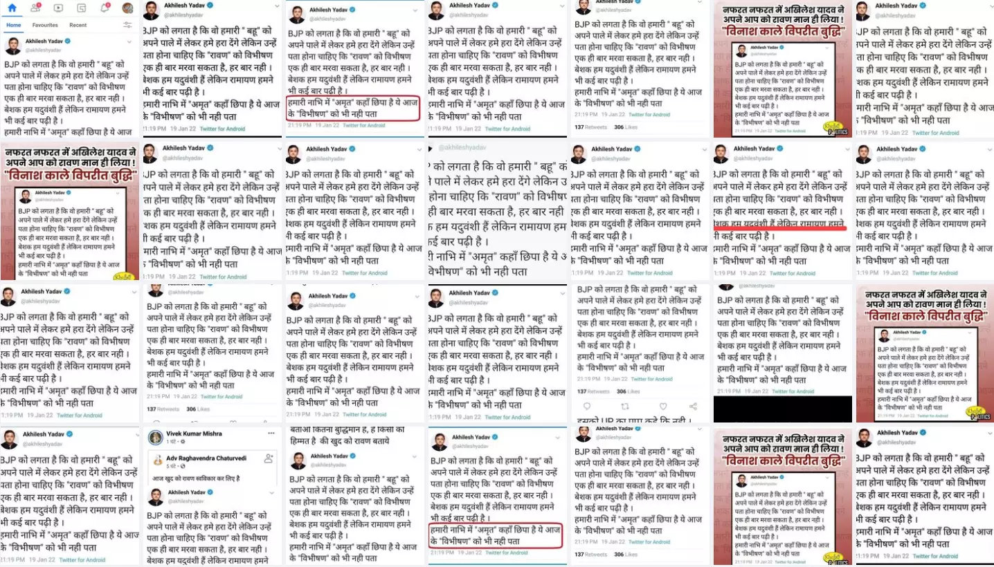 वायरल ट्वीट में लिखा है, "BJP को लगता है कि वो हमारी बहू को अपने पाले में लेकर हमें हरा देगें लेकिन उन्हें पता होना चाहिए कि रावण को विभीषण एक ही बार मरवा सकता है हर बार नहीं। बेशक हम यदुवंशी हैं लेकिन रामायण हमने भी कई बार पढ़ी है। हमारी नाभि में अमृत कहां छिपा है ये आज के विभीषण को भी नहीं पता."