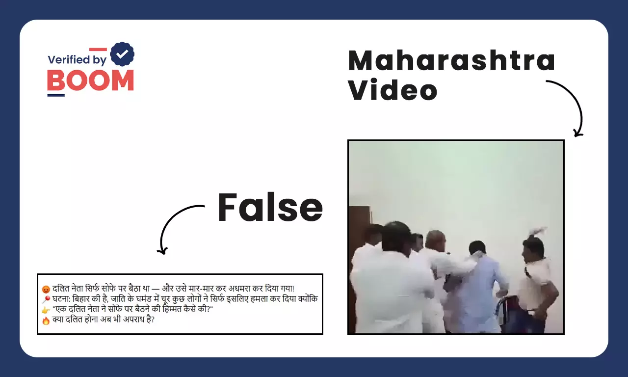 बिहार विधानसभा चुनाव 2025 की तैयारियों के बीच सोफे में बैठने को लेकर एक दलित नेता के साथ मारपीट के गलत दावे से महाराष्ट्र का वीडियो वायरल है.