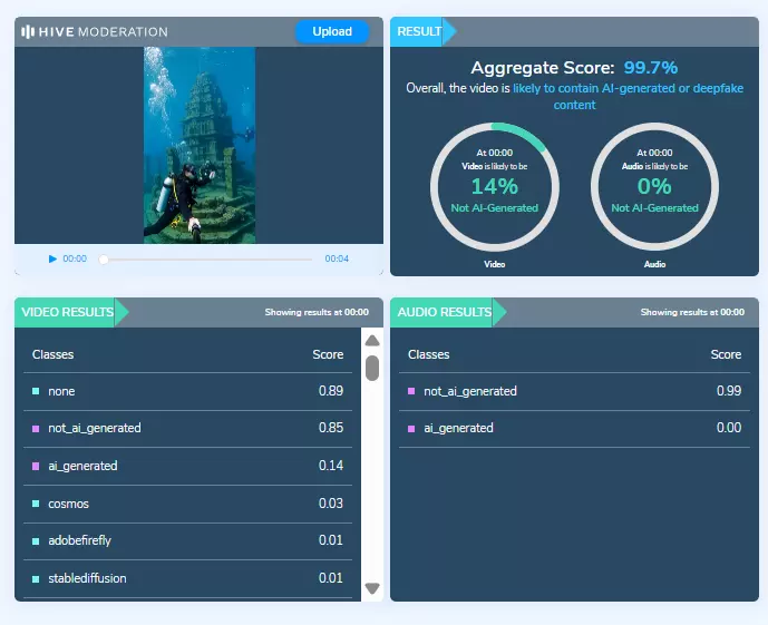 वीडियो के एआई जनरेटेड होने की संभावना 99.7 %