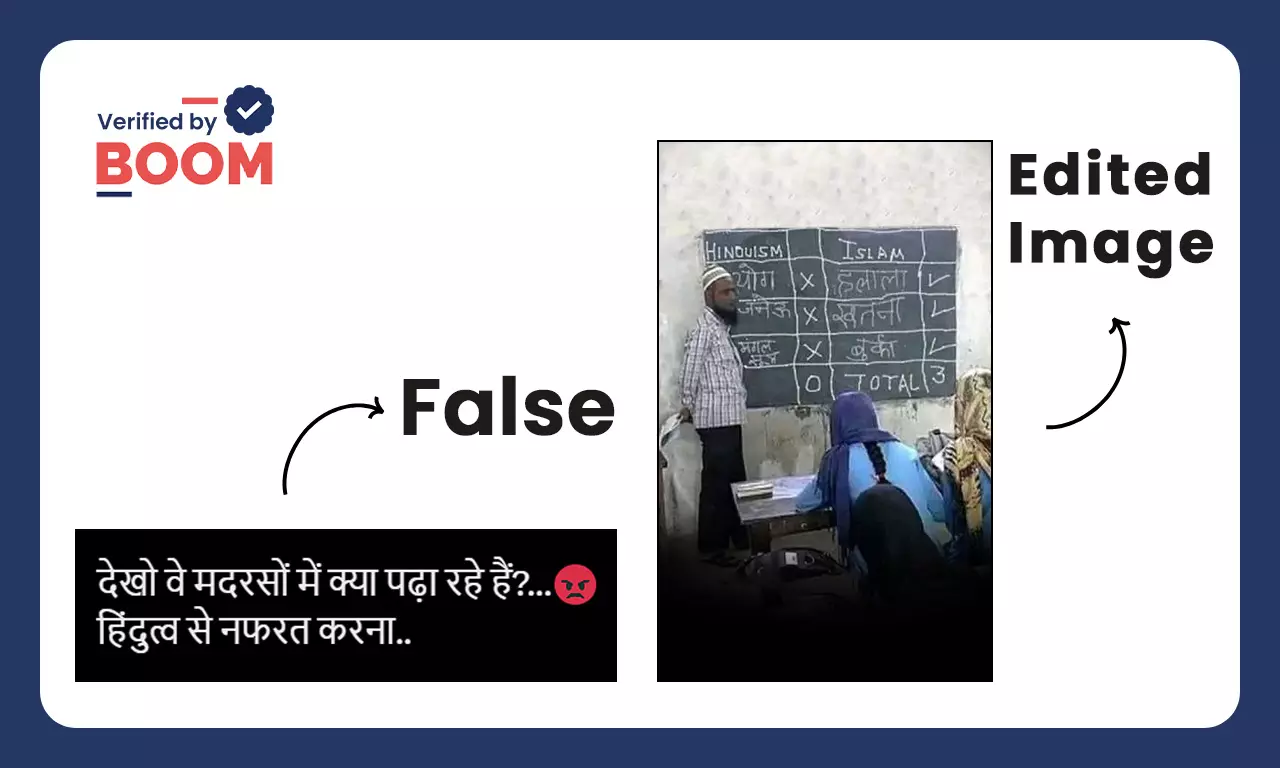 हिंदू विरोधी शिक्षा देते हुए एक मुस्लिम शिक्षक की डिजिटली एडिटेड तस्वीर सोशल मीडिया पर एकबार फिर से वायरल हो रही है.