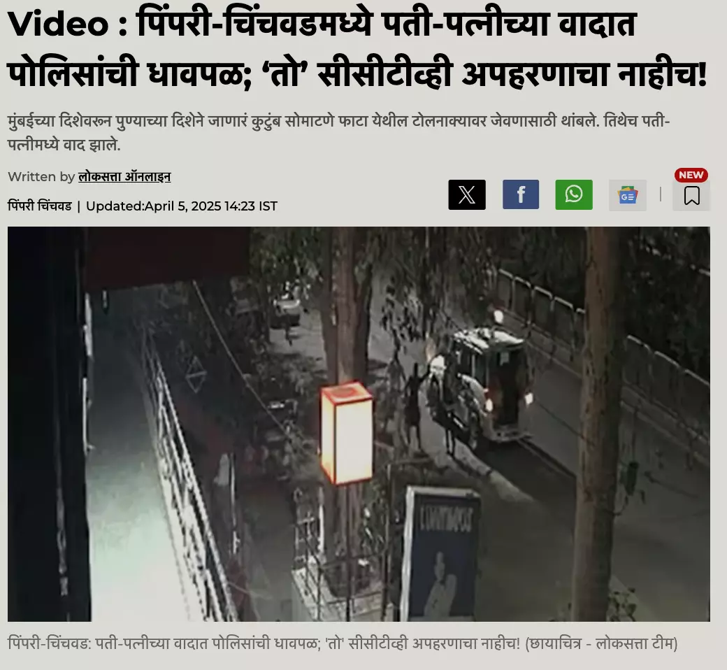 लोकसत्ता की 5 अप्रैल 2025 की रिपोर्ट में बताया गया कि मुंबई से पुणे जा रहा एक परिवार सोमाटने फाटा टोल बूथ के पास पर डिनर के लिए रूका था तभी वहां पति-पत्नी में किसी बात पर बहस हो गई थी.