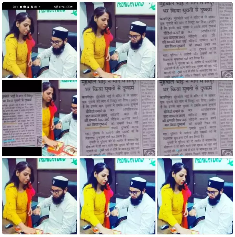 सोशल मीडिया पर एक तस्वीर शेयर की जा रही है जिसमें एक मुस्लिम शख़्स को एक महिला राखी बाँधती हुई दिख रही है. इस तस्वीर के साथ एक अख़बार की कटिंग भी शेयर हो रही है जिसमें लिखा है 'मुँहबोले भाई ने माँग में सिंदूर भर किया युवती से दुष्कर्म'. इन तस्वीरों को शेयर कर ये दावा किया जा रहा है कि राखी बाँध रही महिला के साथ मुस्लिम युवक ने दुष्कर्म किया है.
