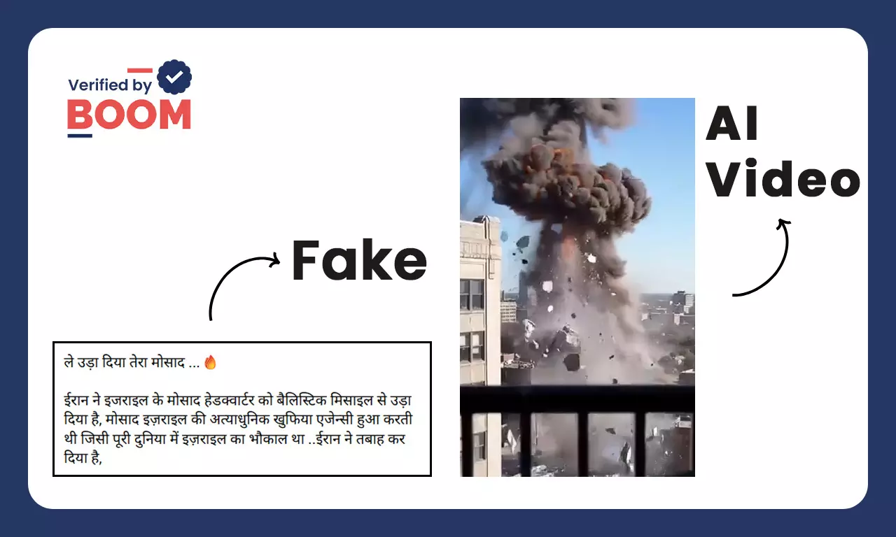 सोशल मीडिया पर एआई जनरेटेड वीडियो एवं तस्वीर वायरल हैं, जिन्हें ईरान द्वारा मोसाद के हेडक्वार्टर को तबाह कर दिए जाने के दावे से शेयर किया जा रहा है.
