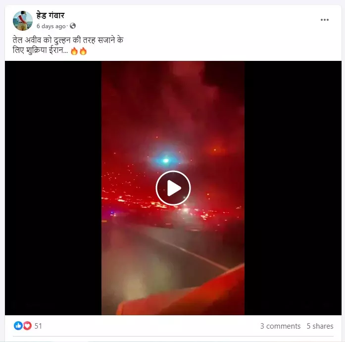 सोशल मीडिया प्लेटफॉर्म एक्स पर वायरल वीडियो को शेयर करते हुए एक वेरिफाइड यूजर ने लिखा, 'तेल अवीव को दुल्हन की तरह सजाने के लिए शुक्रिया ईरान. उम्मीद है कि आप ऐसा बार-बार करोगे.' (पोस्ट का आर्काइव लिंक)