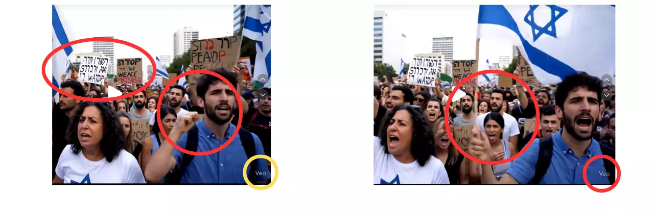 इसके अलावा एक फ्रेम में नीली टी-शर्ट पहने शख्स के हाथ में कुछ नहीं है और दूसरे फ्रेम में अचानक से इजरायली झंडा नजर आने लगता है.