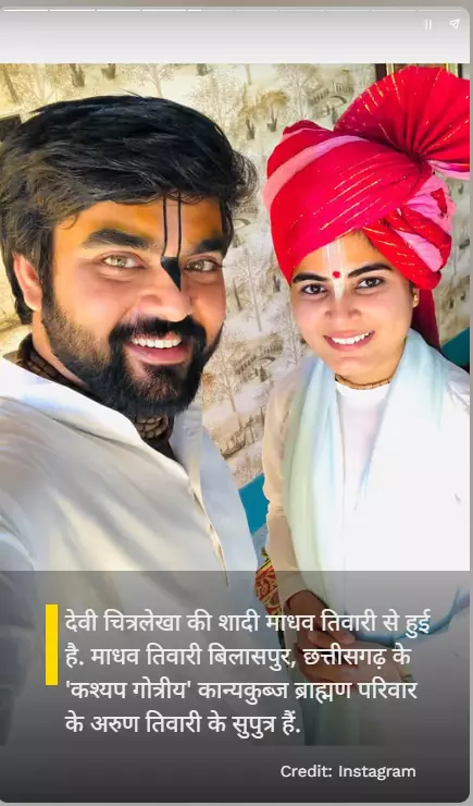 इस वेब स्टोरी में चित्रलेखा का परिचय देते हुए बताया गया है कि इन दिनों वह अपने पति माधव तिवारी के साथ अमेरिका घूम रही हैं. इसमें यह भी बताया गया कि माधव छत्तीसगढ़ के बिलासपुर से हैं और ‘कश्यप गोत्रीय’ कान्यकुब्ज ब्राह्मण परिवार के अरुण तिवारी के बेटे हैं.