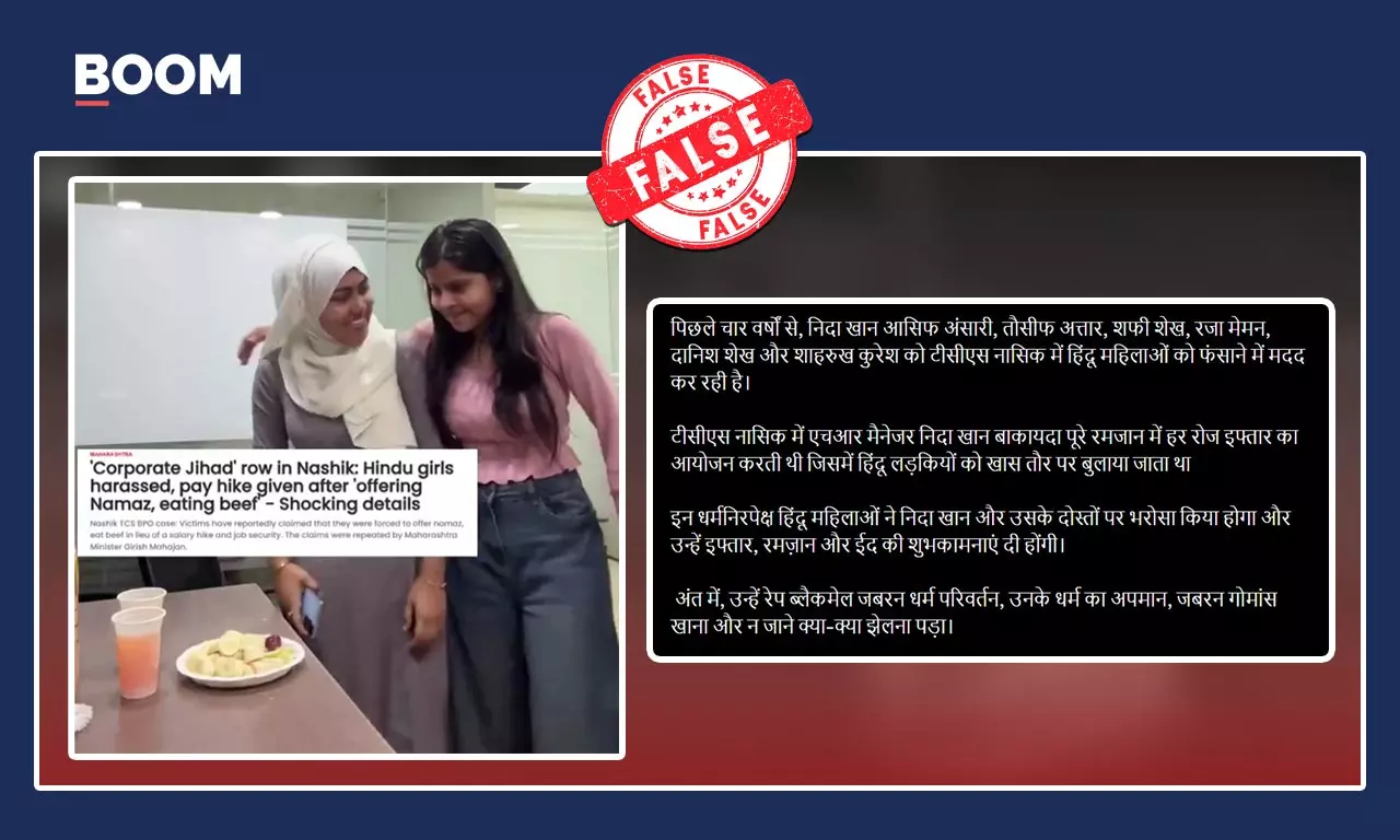 सोशल मीडिया पर नासिक TCS केस से जोड़कर एक वीडियो वायरल हो रहा है, जिसमें एक महिला एक मुस्लिम महिला को इफ्तार कराती नजर आ रही हैं. इसके साथ लिखा जा रहा है कि TCS नासिक में एचआर मैनेजर निदा खान पूरे रमजान इफ्तार का आयोजन करती थी, जिसमें हिंदू लड़कियों को खास तौर पर बुलाया जाता था.