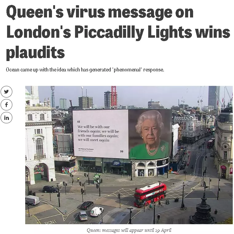 एक न्यूज़ वेबसाइट campaign ने इस ख़बर के साथ बिल्कुल उसी तस्वीर का प्रयोग किया है जो वायरल है, लेकिन इसमें एलिज़ाबेथ द्वितीय का असल सन्देश लिखा है.
