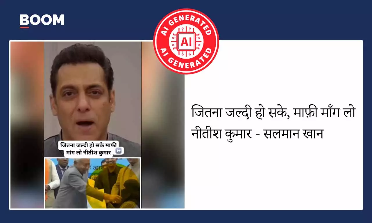 हिजाब विवाद पर नीतीश कुमार से मांफी मांगने के लिए कहते सलमान खान का वीडियो AI जनरेटेड है