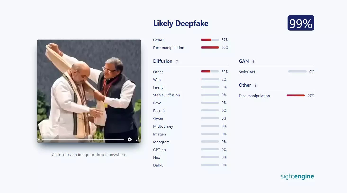 हमने वायरल वीडियो के कीफ्रेम को एआई डिटेक्टर टूल WasItAI और SeightEngine पर चेक किया. दोनों ही टूल्स ने वीडियो के एआई जनरेटेड होने की प्रबल संभावना बताई है.